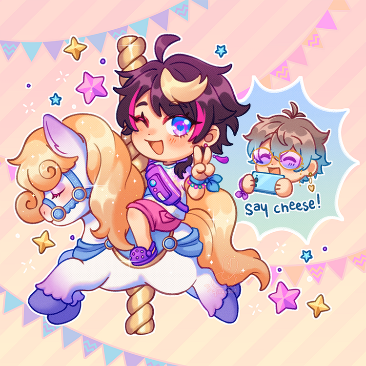 I enjoy dumping neon blush on all my characters and drawing cute cuddly things.