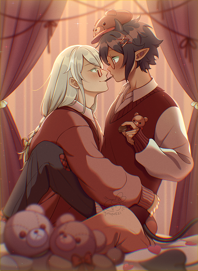 I enjoy dumping neon blush on all my characters and drawing cute cuddly things.